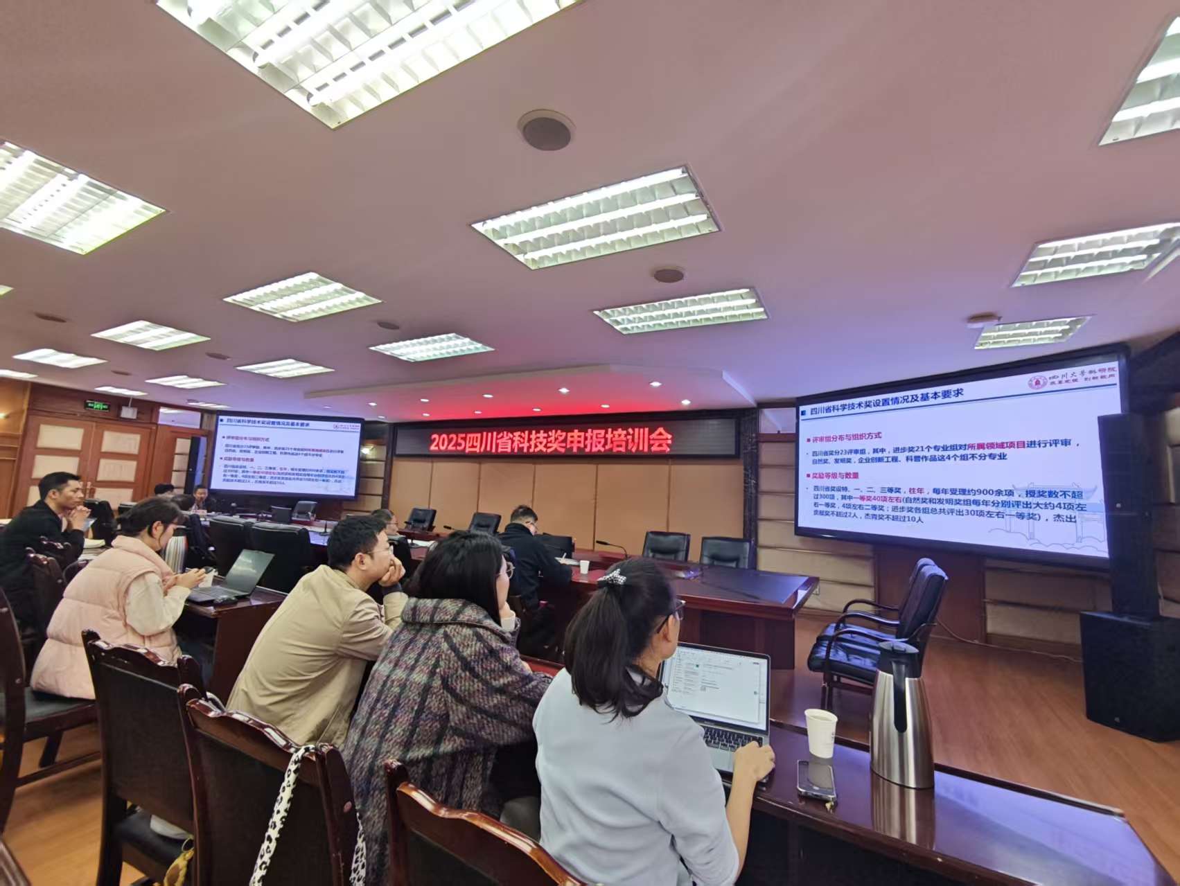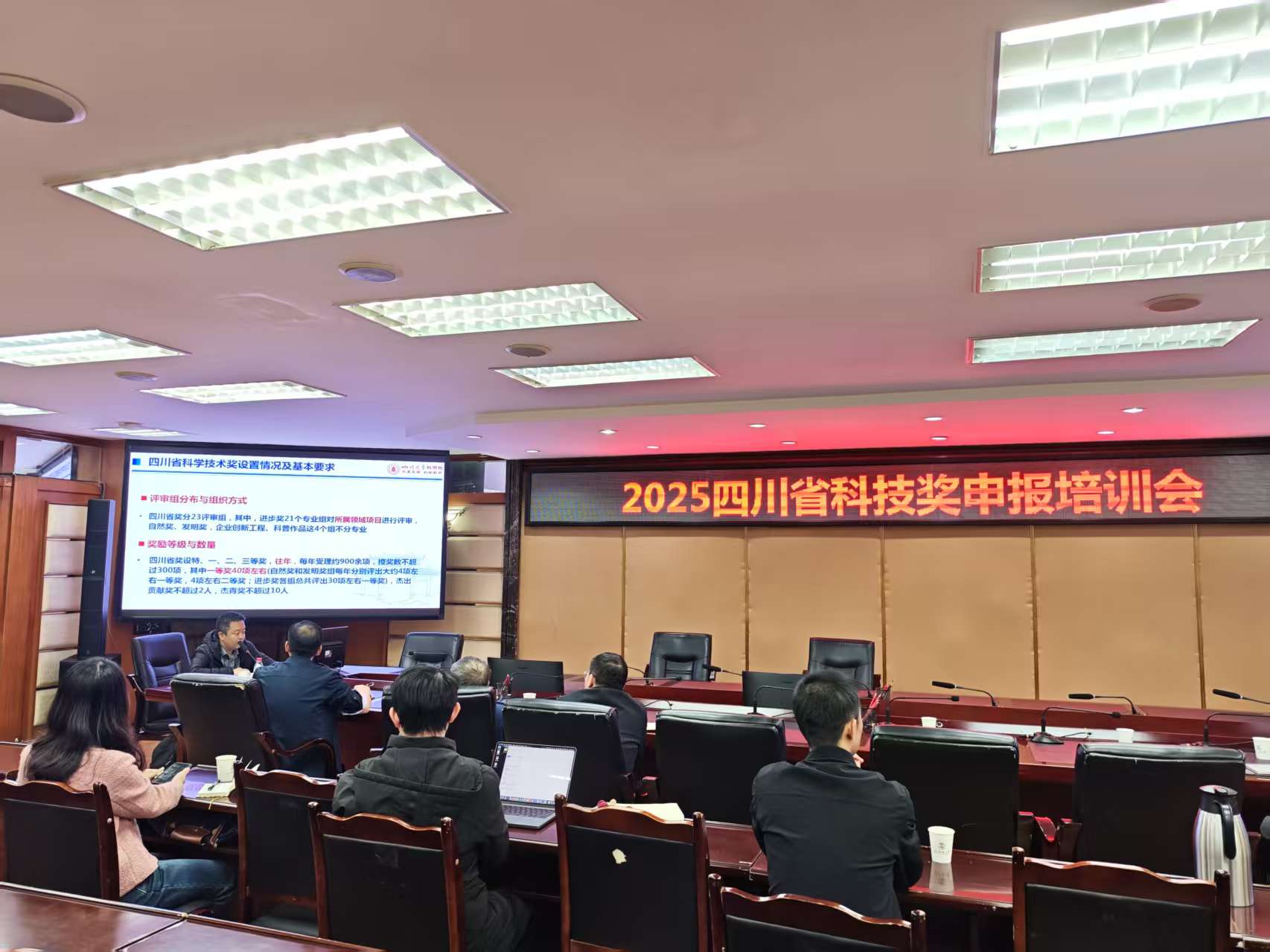 11月13日,学校召开2025年度科学技术奖励申报培训会,特别邀请四川大学科学技术发展研究院成果管理科科长李昕然进行指导和培训。各理工科学院、心理学院、商学院、脑与心理科学研究院拟申报2025年度四川省科学技术奖项的负责人或团队核心成员参加了此次培训会。会议由科学技术处处长陈光淦主持。